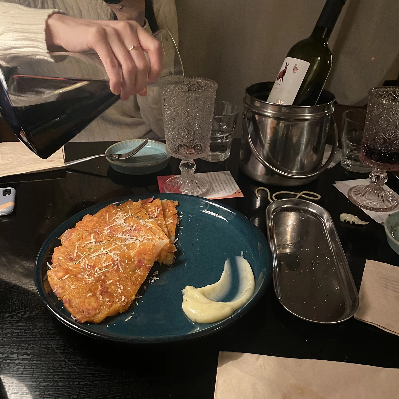 전에는 무조건 막걸리지! 라고 생각하기 쉽다. 물론 그 조합을 상당히 사랑하기는 하지만, 전에 무조건 막걸리만을 생각한다면 이젠 살짝 섭섭하다. 김치전과 먹는 와인의 조합이 생각보다 훨씬 괜찮기 때문이다. 사실 이 조합은 서촌의 한 와인바에서 처음 먹어봤는데, 그 이후로 종종 집에서도 먹게 되었다. 기름진 김치전에 산미 있는 와인 한 잔 곁들여주면 참 좋다. 김치전과는 '르 레프리 토스카나’를 마셨는데 조합이 괜찮았다.