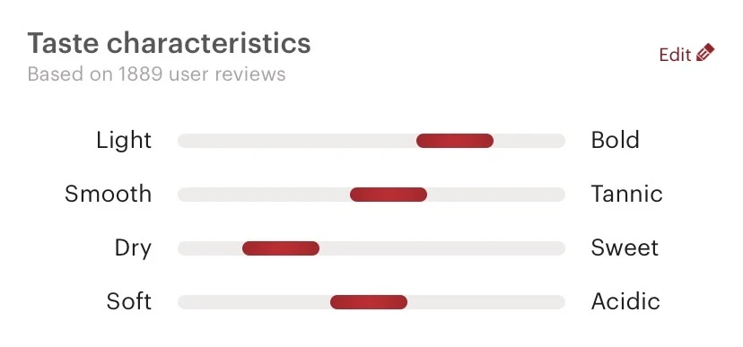 비비노 앱에서는 와인 맛의 특징을 총 4가지 척도로 표현하는데, 그 척도를 아주 간단하게 설명해보겠다.