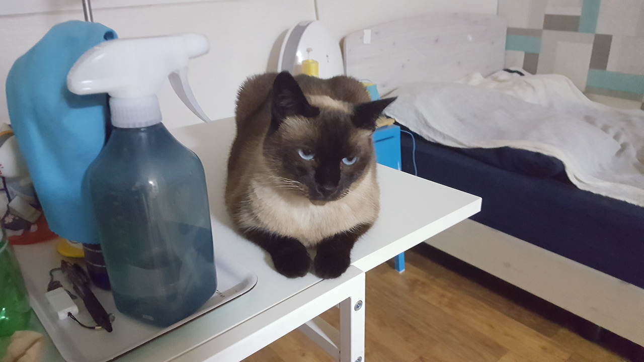 샴고양이 중에서도 얼굴이 까만 편인 꿍꿍이가 나와 함께 한 지 만 2년이 넘었고 연차로 보면 3년 차다.