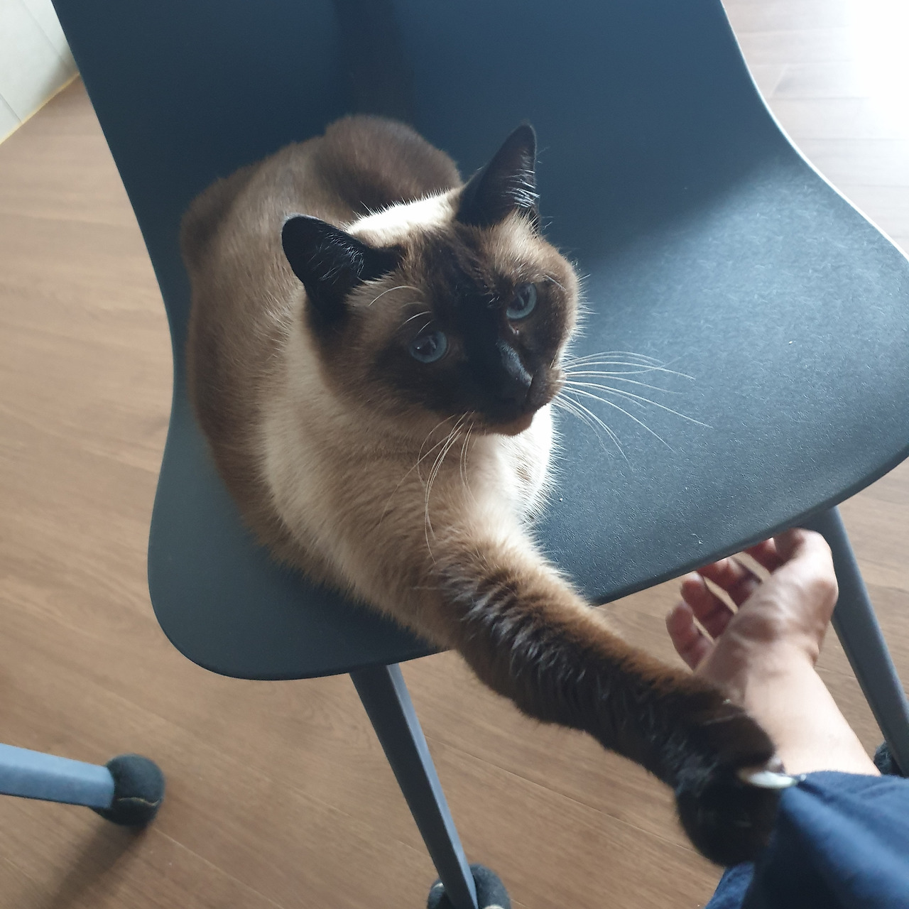 여러 집을 전전해서 그런 건지 샴고양이 특유의 개냥이스러움 때문인 건지 정말 손이 안 가는 녀석이었다. 사료를 먹어도 토하는 게 거의 없고 대소변 실수도 거의 없었다. 병치레도 거의 없고 좀 심한 장난을 쳐도 할퀴거나 하는 경우는 것의 없었다. 화가 난다 싶으면 스크래처 가서 조용히 혼자 긁고 온다. 그렇게 혼자 화를 풀고 오면 다시 곁에 다가와 조용히 옆에 앉는다. 여러 집을 전전해서 사랑받기 위해 노력하는 건지 아니면 그저 원래 성격이 사랑받기 쉬운 건지 몰라도 모난 게 많은 나는 그런 녀석이 신기하고 사랑스럽다.