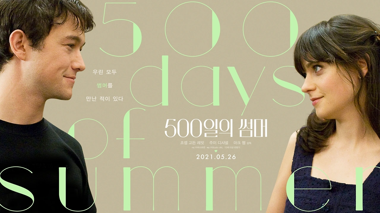 <500일의 썸머>는 기억에 관한 영화다. 운명이라고 믿었던 사람과의 기억을 시간이 지난 후 되짚어 보면서 스쳐간 인연이었음을 인정하는 과정을 그렸다. 떠오르는 기억은 지나치게 낭만적이거나, 혹은 지나치게 비관적이지만 현실은 그 중간 어디쯤에 있다. 실제 경험은 너무 비극적이지도 않고 그렇다고 너무 낭만적이지도 않다. 밝은 아이보리 톤으로 채색된 기억은 톰의 어른스러운 동생의 조언을 계기로 무채색의 건조함 역시 품고 있음을 깨닫는다.