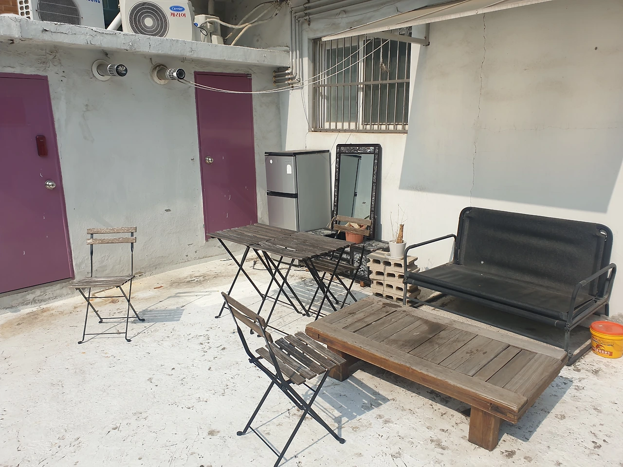 1박에 3만 원이 조금 넘는 가격에 묵은 숙소는 꽤 좋았다.역에서 10-15분 정도 걸어야 있는 곳인데 굴다리 같은 입구에 들어서면 6개 방이 있는 오래된 복도식 빌라 같은 곳이었다. 터프한 모습의 외관과 달리 방 내부는 생각보다 깔끔하며 커다란 짙은 남색의 침대, 방을 가로지르는 커다란 스탠드의 인테리어가 좋았다. 망원동 골목길에서 많은 시간을 보냈지만 다음에 같은숙소를 이용한다면 테라스에 앉아 괜찮은 와인과 함께 책을 읽는 것도 나쁘지 않겠다 싶었다.