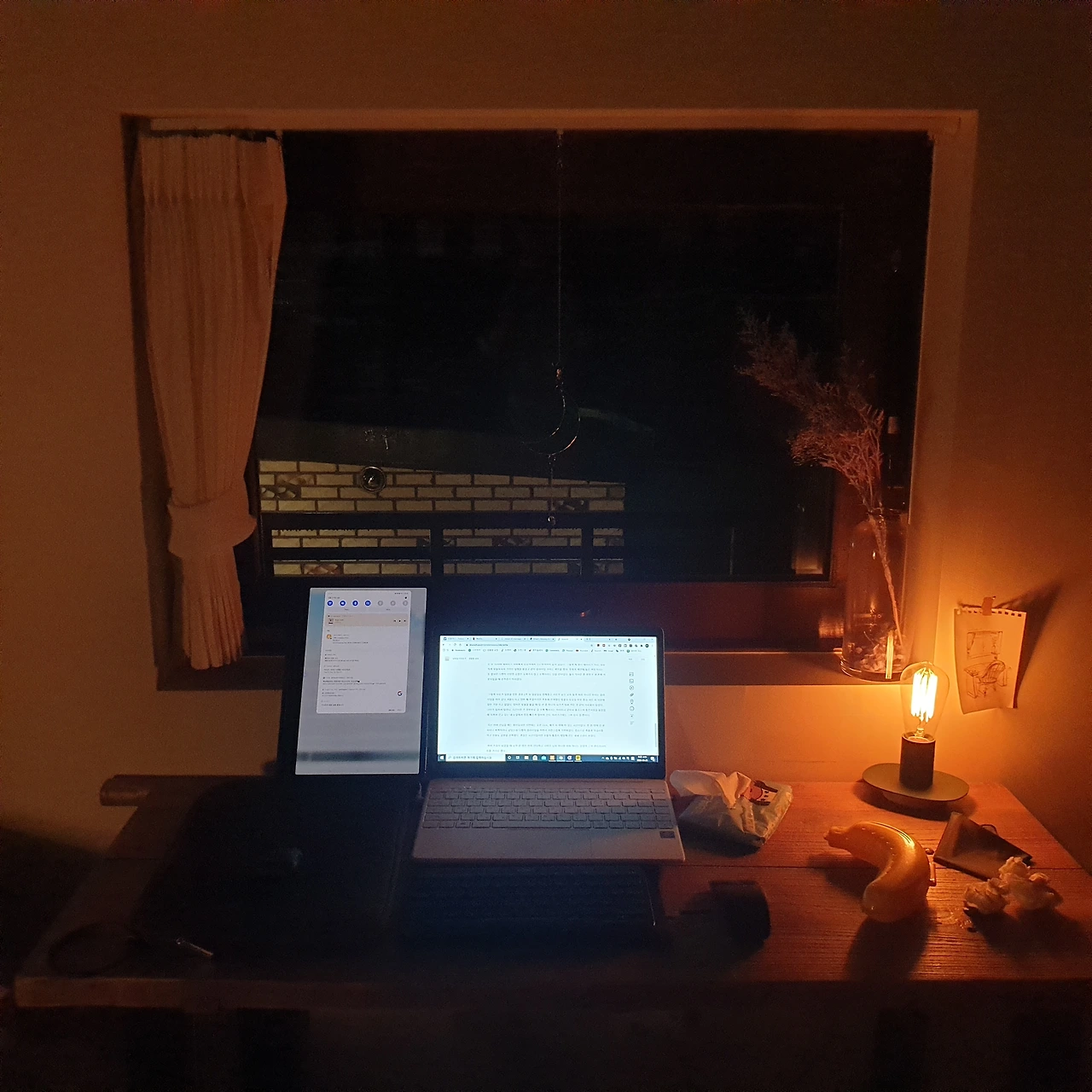 사실 퇴사하고자 하는 마음은 올해 초부터 꽤 확고하게 있었지만 역시나 걸리는 건 은행 대출과 이직 준비의 어려움과 새로운 시작에 앞선 불안함이었다. 그즈음에 코로나 장기화로 회사에서는 연차 조기 소진을 독려하면서 주 4일 근무를 할 때라 일에 대한 부담도 적어서 그럭저럭 다녔다. 하지만 어떤 계기로 오랫동안 놓았던 긴 글 하나를 다시 작업하면서 글을 향한 마음이 꽤 진지해졌다. 여전히 책상에 서너 시간 넘게 앉아 글을 쓰는 건 고역이기도 하지만 어깨가 뻐근할 때까지 글을 쓰고 기지개를 켜고 창문 밖 지는 해를 바라볼 때 일에서 얻지 못한 성취감이 느껴졌다.