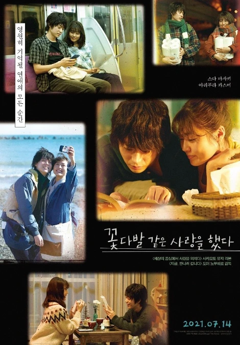 <꽃다발 같은 사랑을 했다>라는 제목은 명백히 과거형이다. 제목부터 관계의 절정은 이미 지났다는 걸 암시한다. 꽃다발은 시간이 지나면 시든다. 어떻게 관리하느냐에 따라 유지기간은 다르겠지만 언젠가는 땅에 묻힌다. 제목을 처음 봤을 때부터 생각했다. 결국에 둘은 헤어지겠지. 예전 같으면 제목만 보고 피했겠지만 오히려 흥미가 돋았다. 일본 영화는 문장형 제목을 선호한다. 감독인 도이 노부히로의 이전 작품인 <지금, 만나러 갑니다>나 각본가인 사카모토 유지의 <세상의 중심에서 사랑을 외치다>처럼 말이다. 반면 한국이나 국내 영화는 명사형 제목을 선호한다. <기생충>이나 <명량>, 혹은 <트루먼 쇼>나 올해 오스카 수상작인 <노매드랜드>처럼 말이다. 영화를 보기 전부터 꽤 전형적인 일본 멜로 영화일 거라고 생각했다.결과적으로꽤 일본스러운 영화였다, 좋은 의미로.