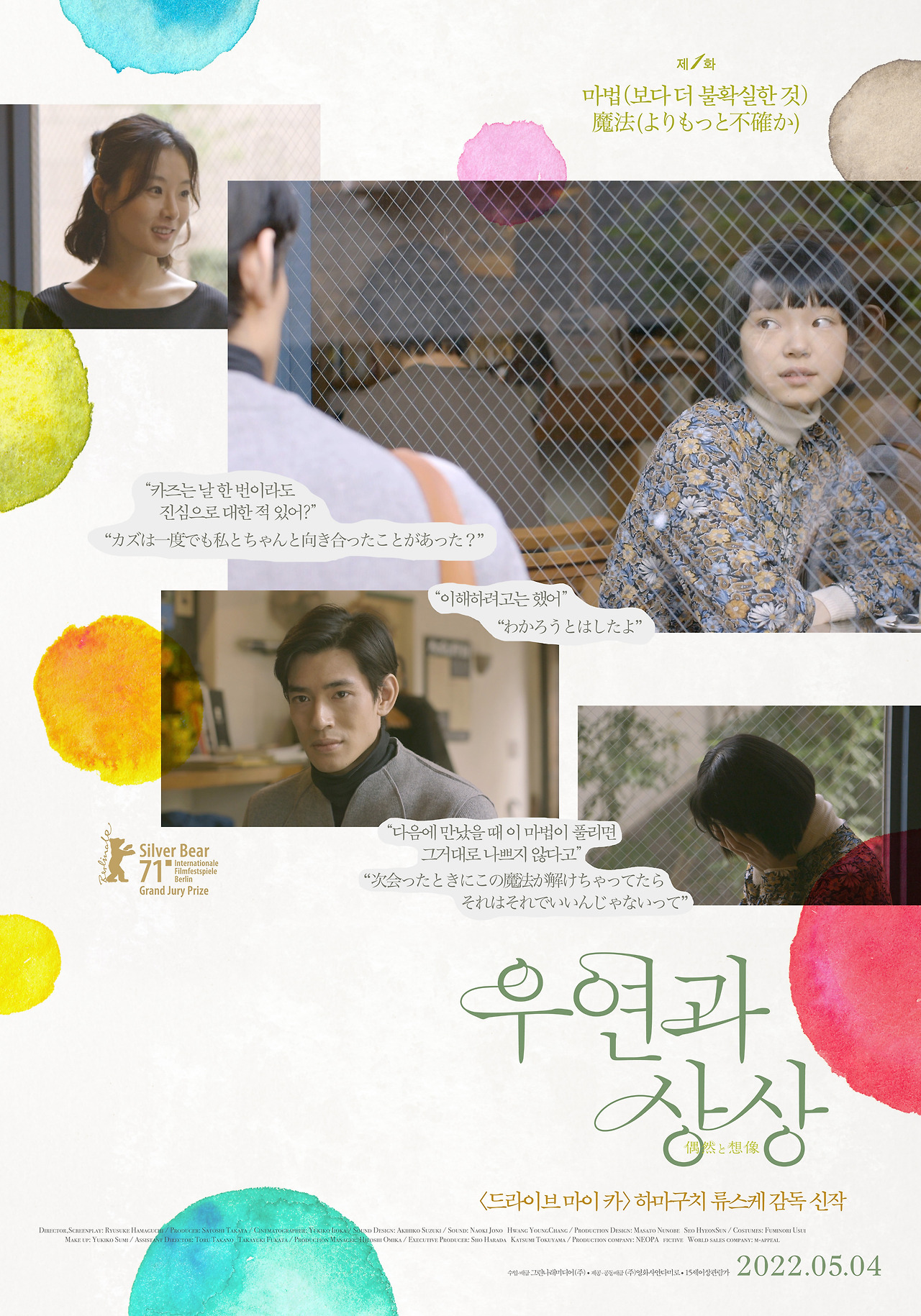 하마구치 류스케는 놀라움의 연속이다. <드라이브 마이 카>가 세 시간의 러닝 타임 동안 묵직한 감동을 남겼다면 <우연과 상상>은 40분짜리 단편 3부작으로 강렬한 몰입감을 선사한다. 더군다나 그 몰입감을 극적 연출이 아닌 정적인 카메라 워크 내에서 이루어지는 대화만으로 끌어낸다는 게 이 영화의 놀라운 점이다.