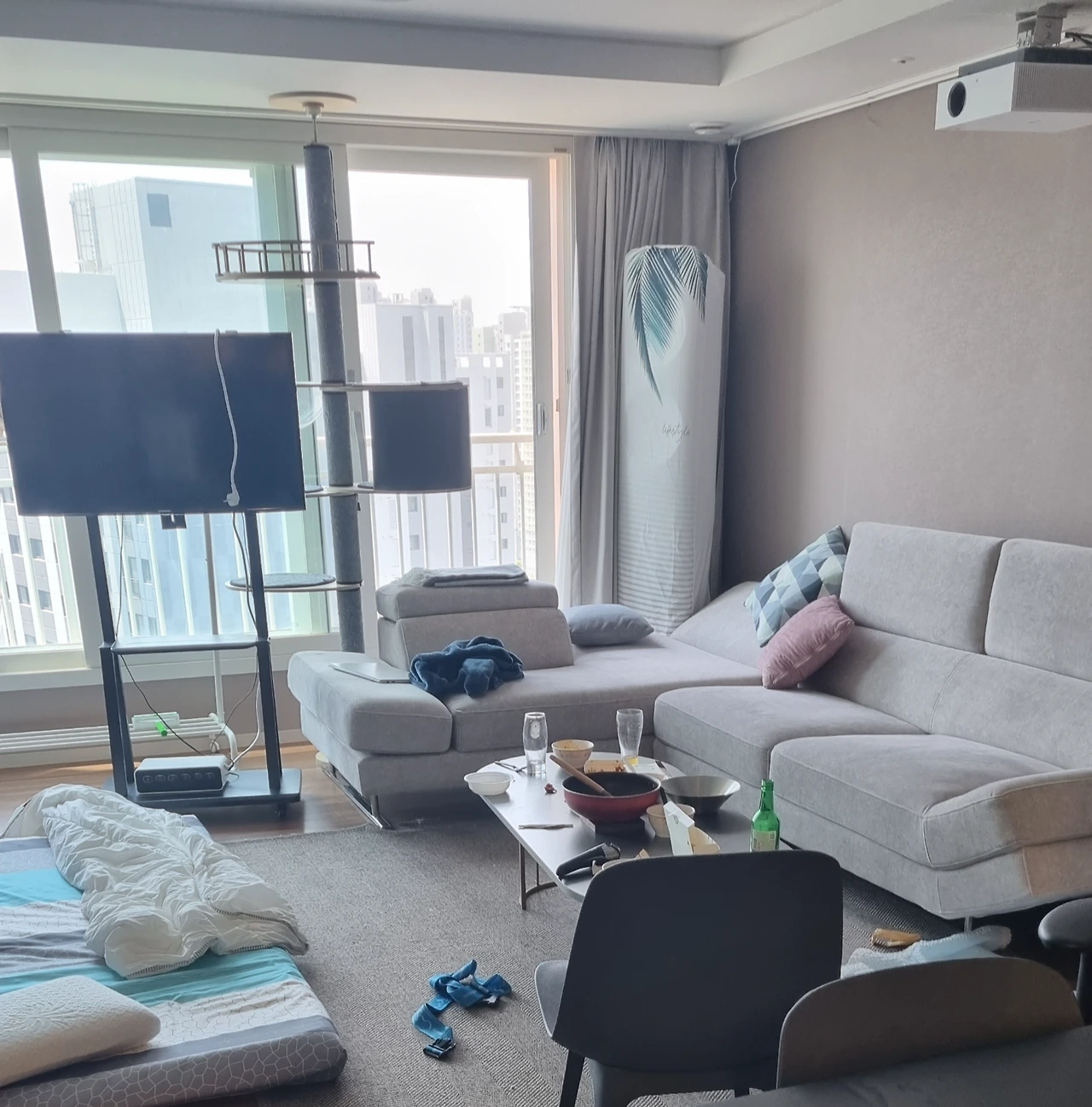 거실영화관을 저희 집 거실 밖으로 옮기는 건 불가능하기에 품고 있는 문제점들은 계속해서 개선해나가려 합니다. 여러 번 오시는 분들은 소파베드에서 편히 누우시면서 보기도 하는데 그 모습을 보면 진짜 본인의 거실에 오신 듯 편해보여서 혼자서 괜히 뿌듯합니다.