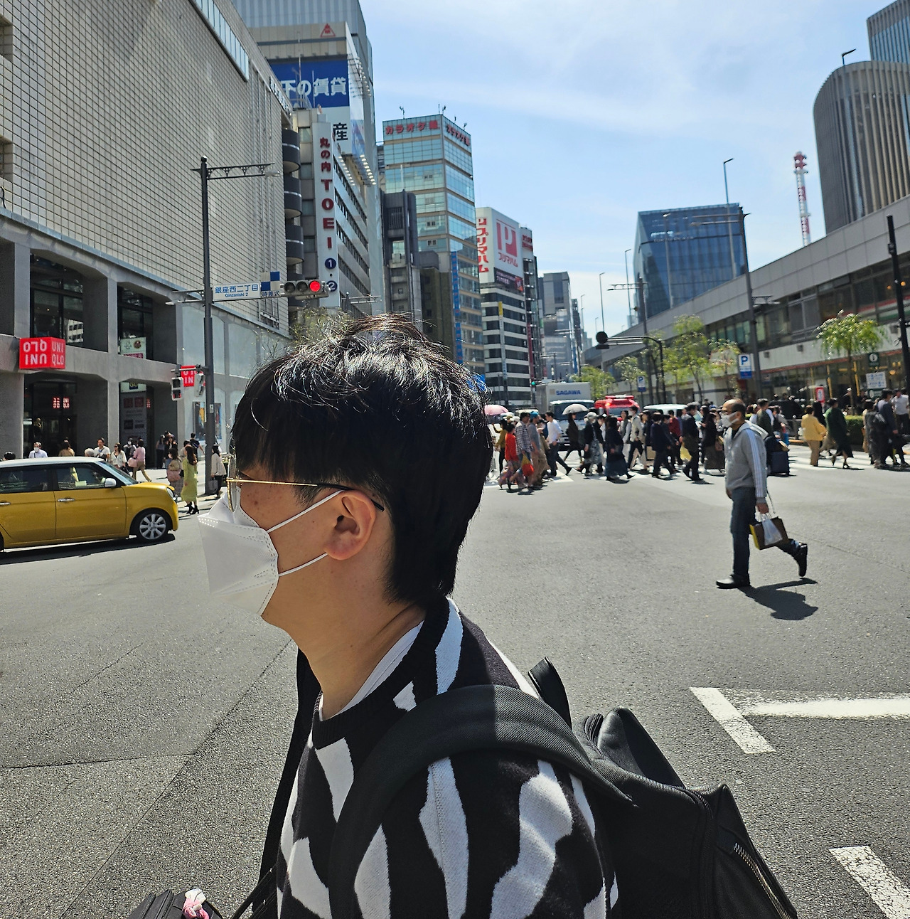 코로나 이후 처음으로 간 일본 여행에서 찍은 사진 중 제일 인상적이었던 도쿄의 횡단보도를 걷는 나를 여자친구가 찍어준 모습. 2족 보행하는 거북이 한 마리가 횡단보도를 건너고 있었다. 의식하지 않은 상태에서 찍은 사진이니 평소의 내 모습이라고 밖에 볼 수 없었다.