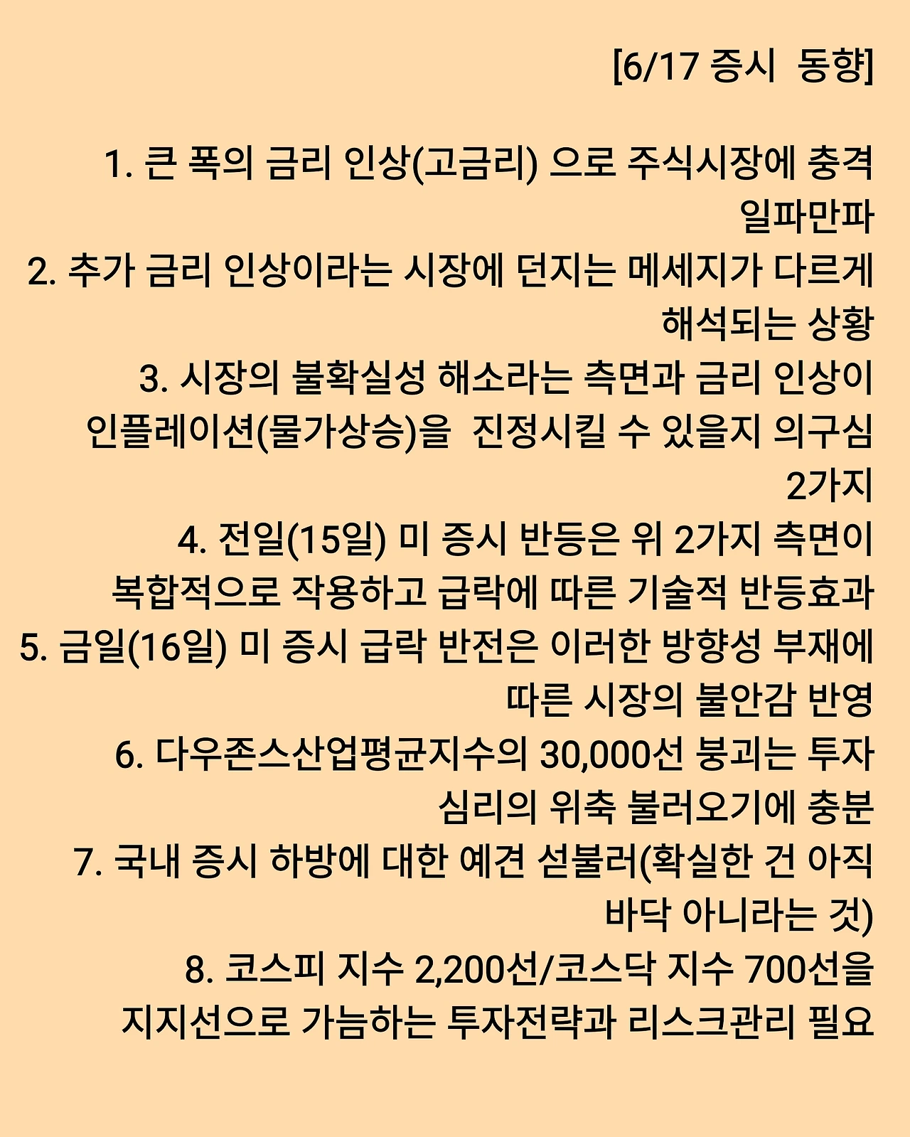 증시 동향부터(6월 하순까지 유효)..