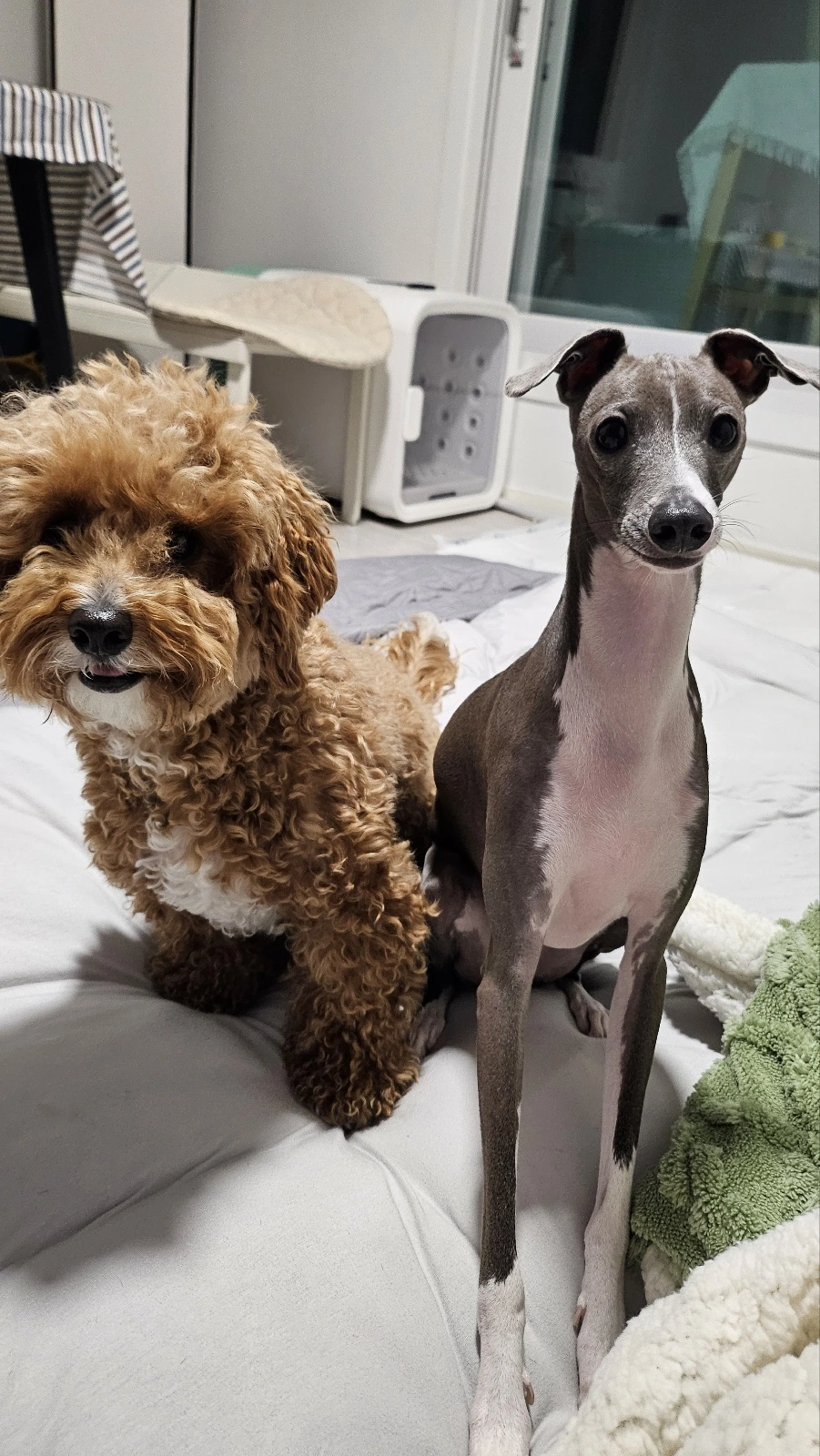 이탈리안그레이하운드 샤샤는 외동으로 컷다면 분리불안이 심했을 강아지다.