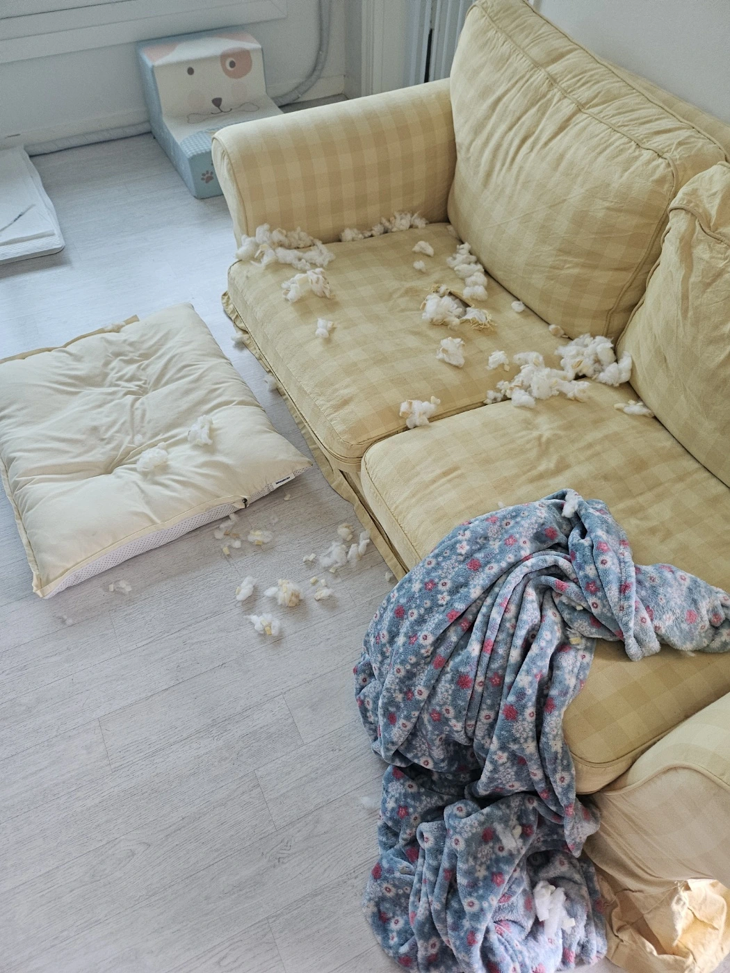 거실에 널부러진 샤샤의 외로움인 휴지 꽃송이들을 보는데, 웃음이 났어.