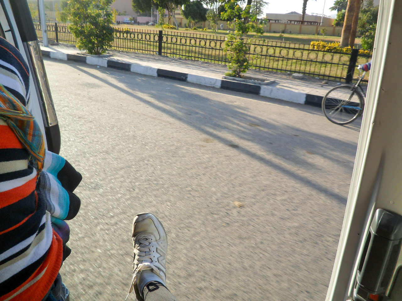 일단 택시를 잡고 친구가 알려준 장소를 말하고 도로를 달렸다. 차 안에서는 난생처음 듣는 아랍음악이 꿈틀거리며 흘러나왔다. 아랍에 왔구나. 생각하고 있는데 맙소사, 도로에 차선이 없다. 그래서 차들이 뒤엉켜 있었다. 다른 차들도 한번 봤다. 봉고차들은 차 문을 열고 달리고 있었고 바퀴 하나 없는 것은 예삿일이며 심지어 이런 차들에 사람이 2~3명씩 매달려서 가고 있다. 이렇게 무질서 한 도로는 처음 봤다. 그런데 그런 와중에 야자수 나무 그림자에 걸려 서서히 지는 커다랗고 붉은 해가 눈에 들어왔다. 처음 듣는 아랍음악과 어울려 이국적인 분위기를 자아냈다. 도로 위의 문화 충격과 자연의 색다른 아름다움을 함께 느낀 참 오묘한 첫인상이었다. 사실 이때까지는 두려움보다는 오히려 자유를 더 느꼈던 것 같다. 상상하지 못한 모습으로 규칙을 지키지 않는 일은 나는 못 하지만 그들은 아무렇지도 않게 하는 모습을 보며 약간의 대리만족을 느꼈나 보다(직접 그럴 생각은 없다). 차선도 없고 질서도 없는 도로를 보며 앞으로의 여행에 대한 걱정과 기대가 동시에 차올랐다.