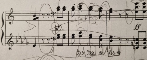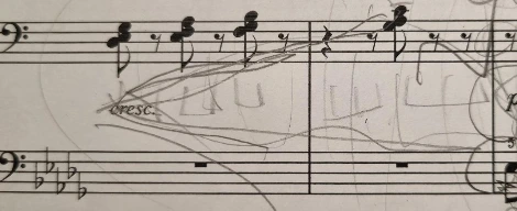 물론 1악장이긴 했지만 이렇게 똑같은 손가락 번호만 쓰는 악보는 처음 봤다(2-3-5의 향연). 빠르기는 또 너무 빨라서 내가 어느 부분을 듣고 있는 건지 가늠도 안 갔고 오른손과 왼손이 이렇게 붙어 있는 악보도 거의 처음 봤다. 당황하는 나를 보고 선생님이 진정시켜 주셨다