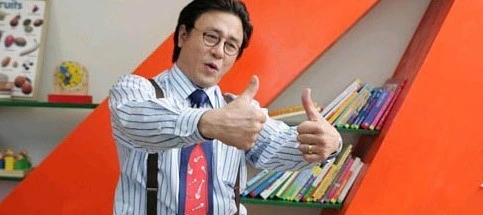 이쯤되면 복수의 대상인 백선생에 대해 궁금해질 때쯤, 적당한 떄에 영화는 백선생에 대해서도 정보를 토해내기 시작합니다. 그는 어린이 영어 학원의 선생님으로 여전히 일하고 있으며 평범한 사람인 척 살아가고 있는데요. 꾸며낸 듯 기괴할 정도의 원색의 옷들과 기울어진 책장의 배경이 그의 이면이 여전히 삐뚤어져 있음에 대해서 말해주는 연출이라는 생각이 들었습니다.