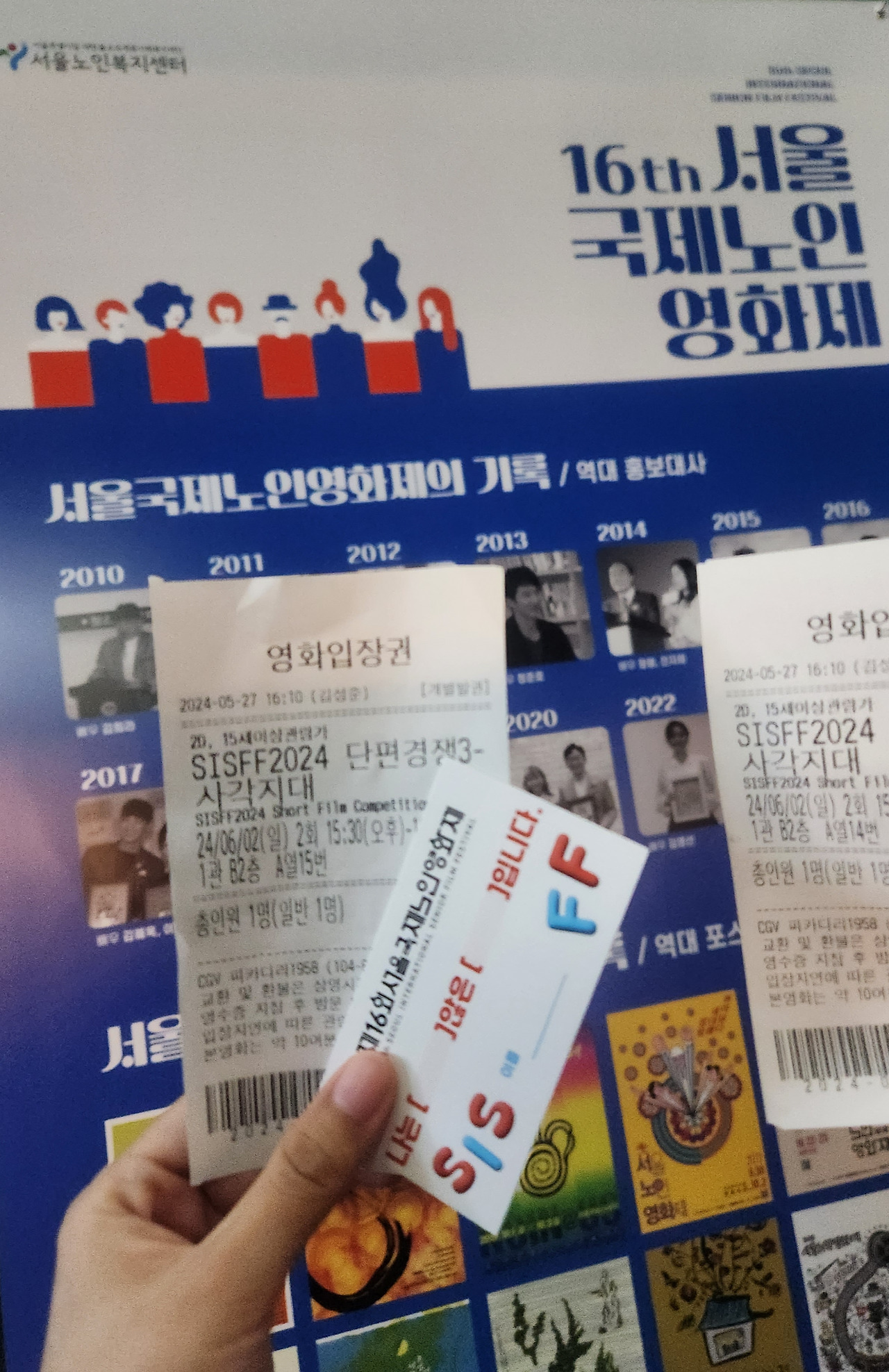 젊은 외국인들이 가득한 익선동에서 벗어나 종로3가 역에서 가까운 CGV피카다리1958로 들어서자 그 안은 노인들로 가득했다. '영화제'에 집중해 영화에 관심을 가진 젊은이들이 많을 것이라 생각했지만 웅성이는 사람들 중 젊은이는 나와 동행인 뿐이었다. 나는 잠시 나의 편협한 시각에 스스로를 반성하는 시간을 가졌다. 서울국제노인영화제는 단순한 영화제가 아닌 '노인'영화제였다. 그 영화제의 당사자이자 주인공인 이들이 모여있는 것이 어디가 이상하단 말인가. 국제노인영화제가 열리는 이곳에서만큼은 젊은이인 나는 잠시 그들과 어울리지 않는 이방인이었다. 온통 젊은 사람들과 키오스크 기계가 가득한 영화관에서 노인들이 느꼈어야 하는 감정이 이러했을까, 잠시 생각에 잠길 수 있었다.