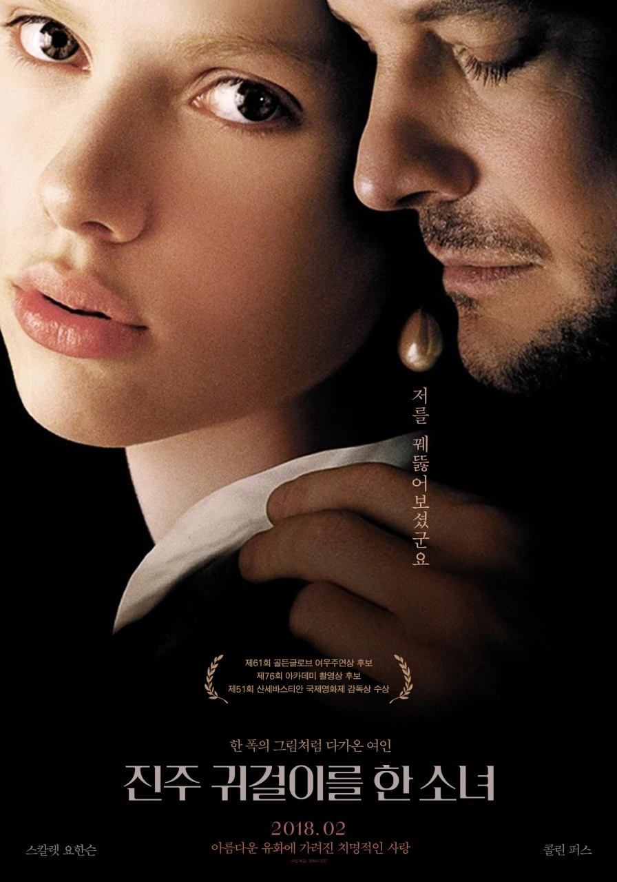 영화 '진주 귀걸이를 한 소녀'는 예술적 감수성을 공유하는 자와 그렇지 못한 자의 가까워질 수 없는 간극, 그리고 같은 감수성을 공유하고 공감할 줄 아는 예술인 사이의 어쩔 수 없는 끌림을 매력적으로 보여주는 영화입니다.