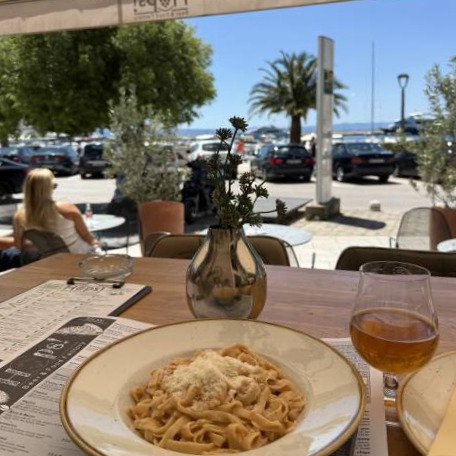 항구 근처의 작은 식당에 자리를 잡고 앉아,