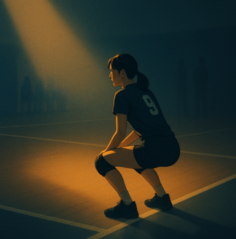 그 순간, 코트 위의 모든 소리가 잠시 멈춘다.