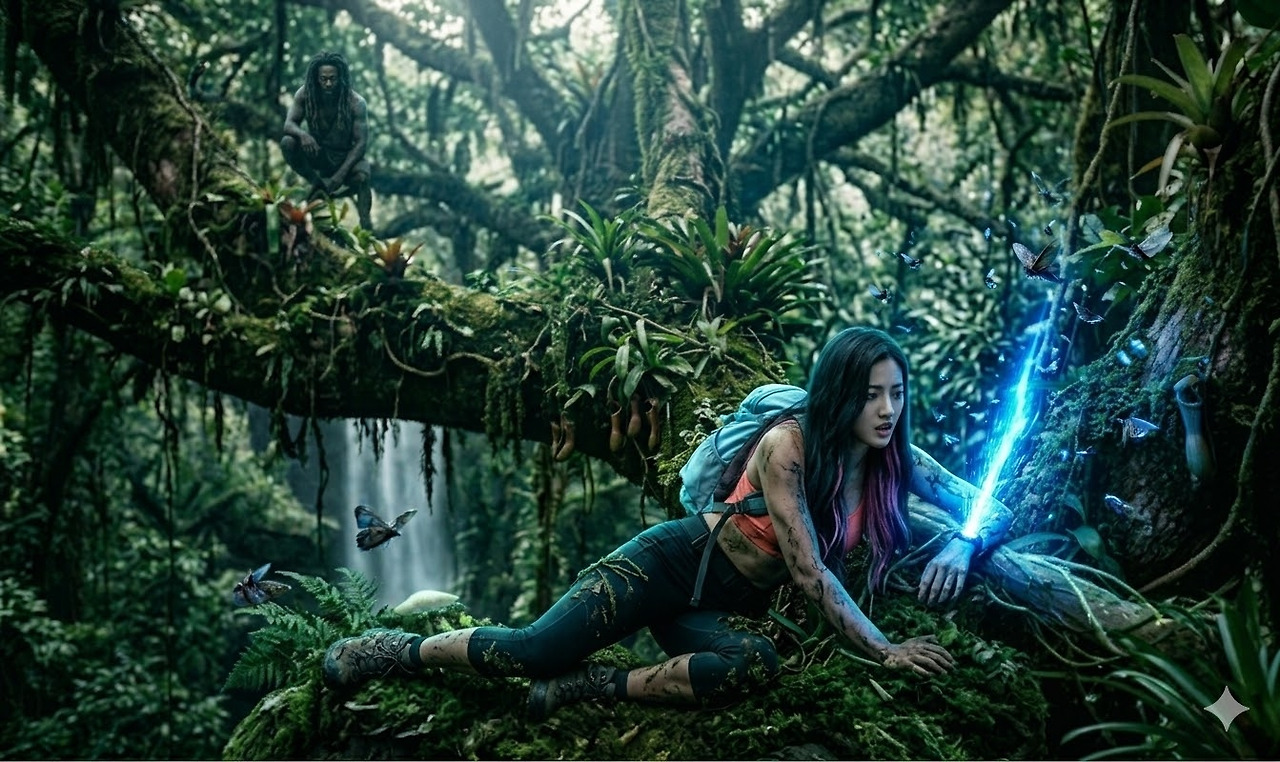 최첨단 기술의 결정체인 AI 걸그룹 리더 '로아'를 차가운 데이터 센터가 아닌, 태초의 생명력이 들끓는 정글 한복판에 던져 놓으면 어떨까?