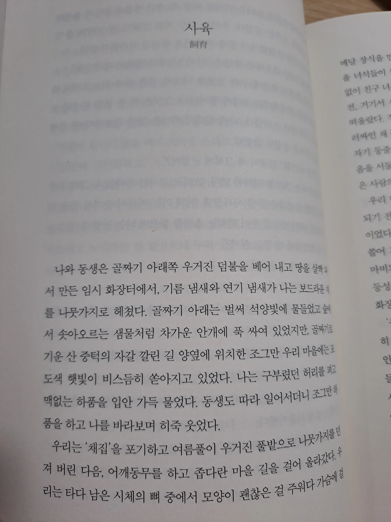 어디서 숨을 쉬어야 할지 애매할 만큼의 어마어마한 장문에 비유가 덕지덕지 붙었는데 그 묘사가 매우 생생하고 끈적한 날 것의 느낌이다. 역시 작가는 아무나 하는 것이 아님을 다시 한번 느낀다. 또한 전쟁을 겪으며 변화하는 인간 군상을 적나라하고 파격적으로 보여준다. 짧은 이야기인데 줄거리가 이렇게 튀어나갈 줄 예상치 못했다.