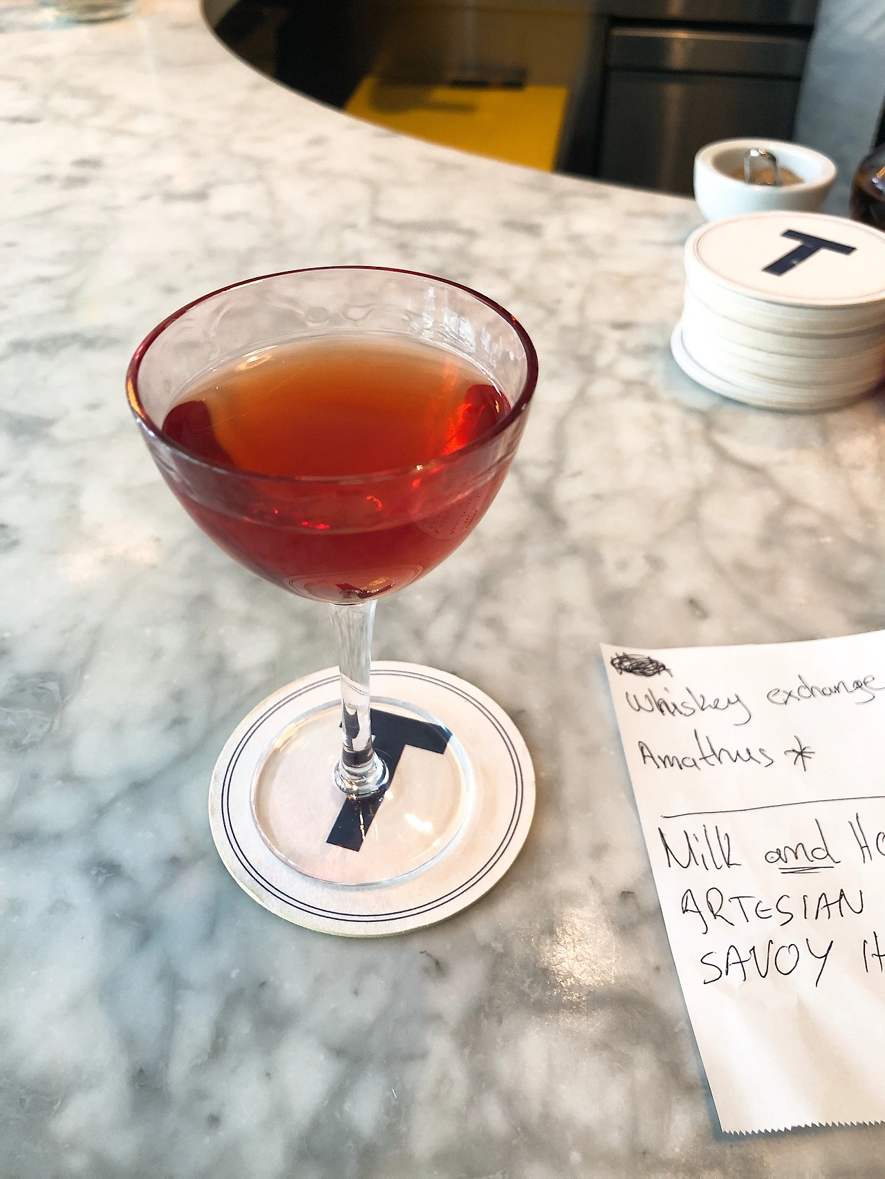 왼쪽이 첫 잔으로 주문한 글렌파글라스를 베이스로 한 로브로이 (변주 한 것이라고), 그리고 오른쪽이 그 어려웠던 네그로니. 그 옆에 있는 메모지가 내가 이 다음에 쓸 글의 주제!