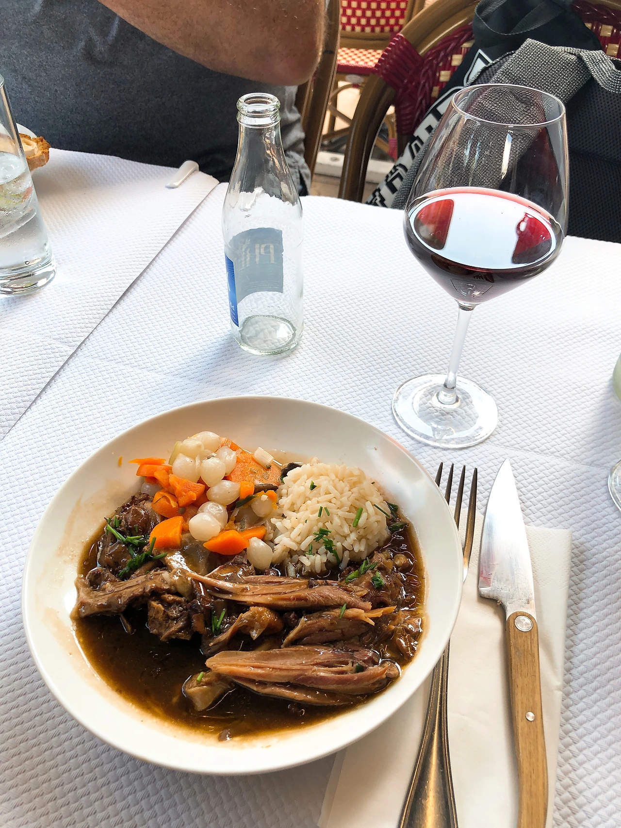 픽상(Fixin), 본 로마네(Vosne Romanee), 쥬브레 샴배르탱(Gevrey Chambertin) 등등... 익숙한 지명들을 지나 본느(Beune) 근처의 어느 마을에서 식사 겸 자유시간이 주어졌다. 이때, 일행 중에 마흔 언저리 즈음되어 보이는 중년 여성과 그 아버지로 보이는 은색의 풍성한 턱수염을 자랑하는 할아버지가 내게 말을 걸어왔다. 어디서 왔는지, 어떻게 와이너리 투어를 하게 됐는지 이런저런 이야기를 나누다 괜찮다면 같이 식사를 하지 않겠냐고 제의했다. 영어로 버벅버벅 대화를 하는 것이 힘들긴 했지만, 인상이 좋기에 그러겠다고 했다. 함께 간 식당에서는 친절하게 부르고뉴에서는 꼬끄 뱅이라는 요리를 먹어봐야 한다며 메뉴까지 추천해 주셨다.