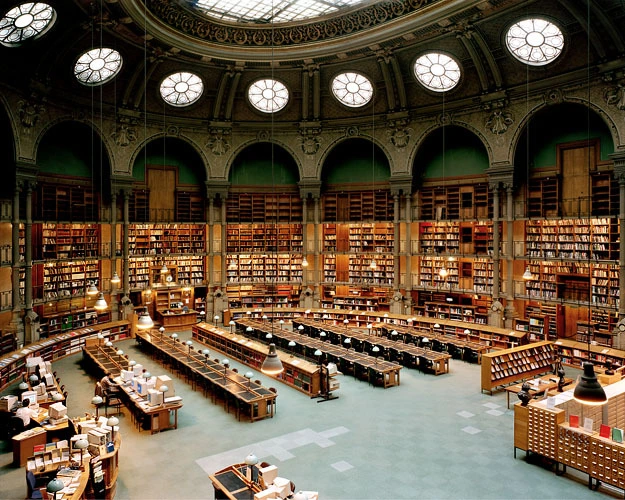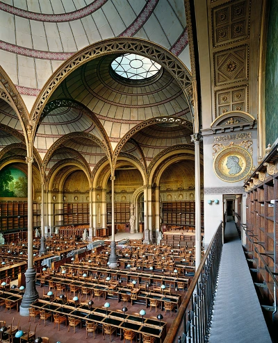 프랑스 국립도서관 라브루스트실(室) 이상적 도서관은 옛 성당의 바닥처럼 두 형태의 혼합, 원형과 직사각형, 타원형과 정사각형이 혼합된 모습일 것이다.