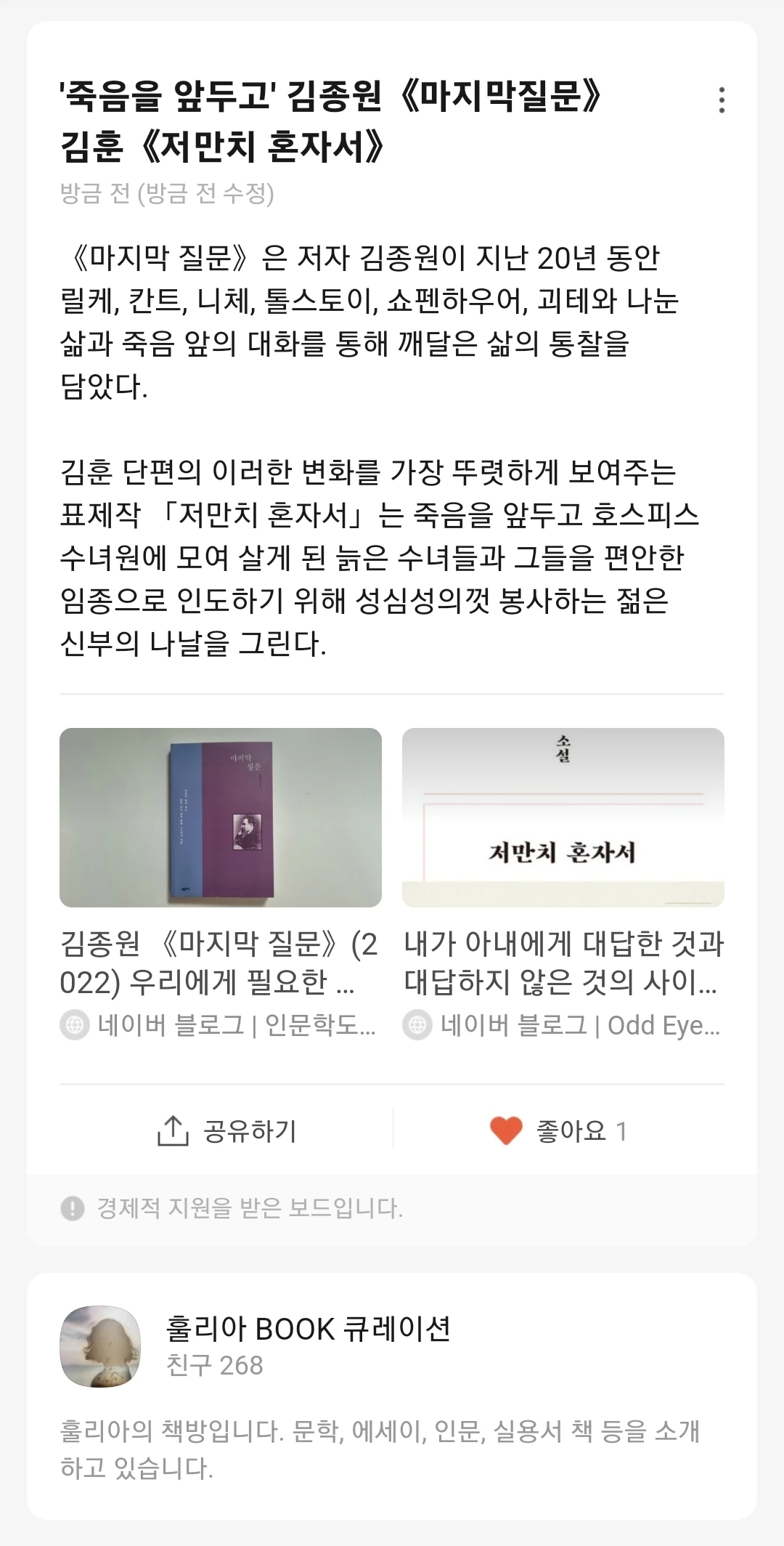 나는 사라질 뻔, 아니 줄곤 사라지고 있었는데 멈출 수 있었다. 여기에도 공기가 있고 물이 있고 밥이 있다. 살아가는 곳이다. 가상이라고 할 수 있나? 실제 주인공인 내가 한 일이고 내 생각이고 나의 바람인데...
