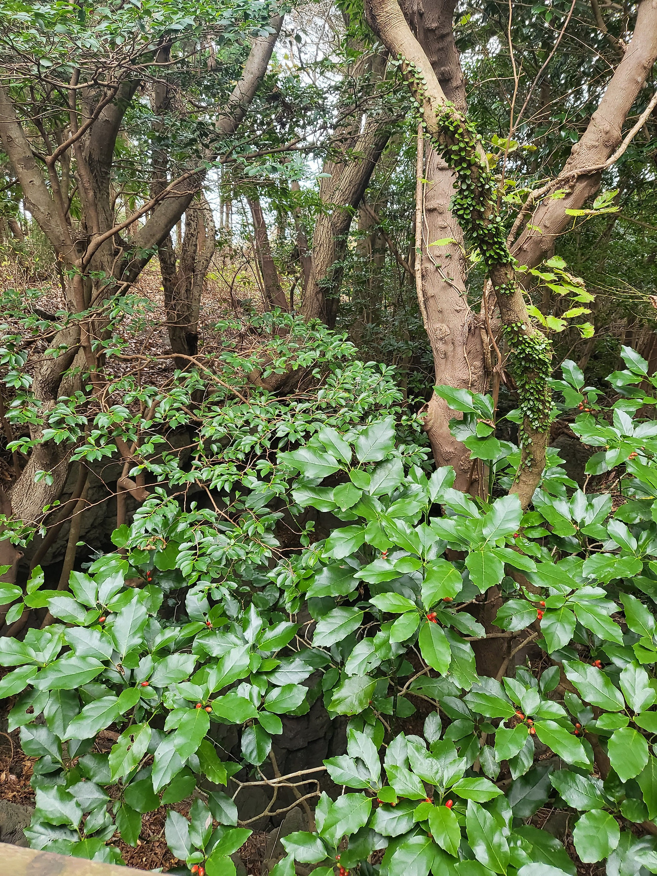 나무에 붙은 이끼는 이슬이 맺혀있을 정도로 습도가 유지되고 있었다. 화산 폭발로 인해 제주가 생겨났다. 수많은 작은 화산 오름, 분출한 용암이 식혀 만들어진 돌기둥 주상절리, 용암 동굴, 분출 화산암인 현무암 지대가 제주를 이루고 있다. 제주는 단단한 한 바위가 대륙처럼 굳혀져 있다기보다는 숨 쉬는 돌 위에 만들어진 땅이라 홍수가 나지도 않고 사시사철 습도를 유지하는 자연 온실처럼 느껴지지 않나 하는 생각이 들었다.
