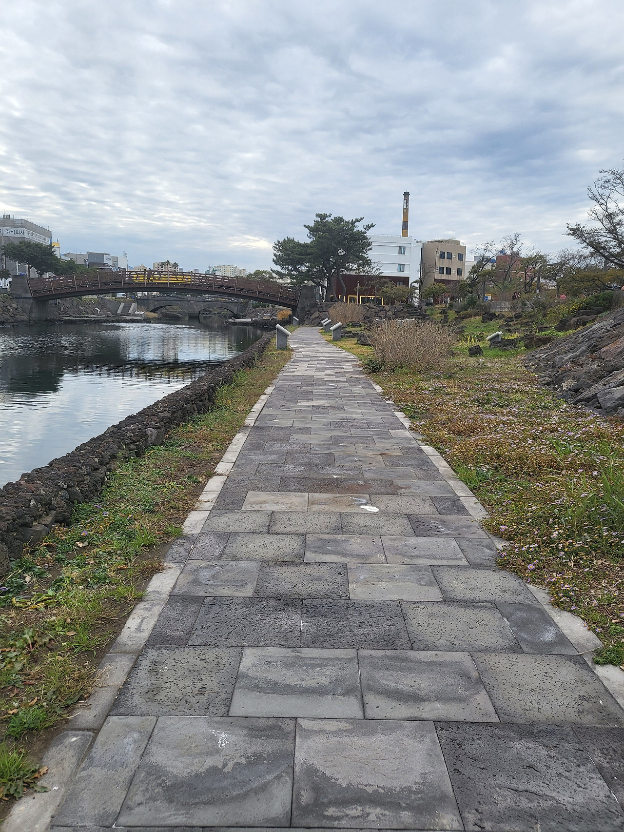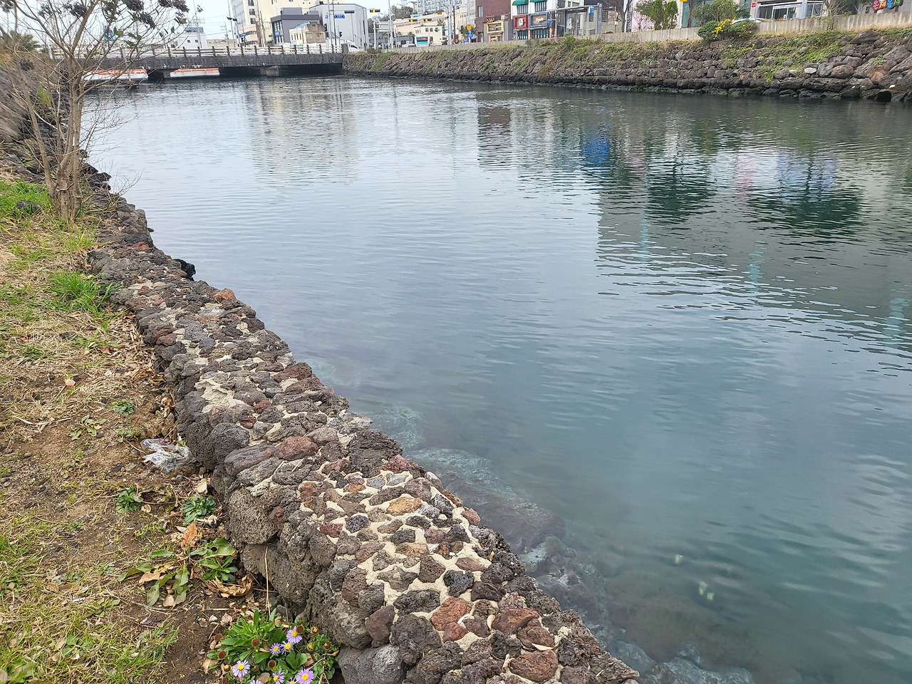 점심을 든든하게 먹은 게 언제였는지.. 탄수화물이 정말 오랜만이란 생각이 들었다. 여행으로 고단했으니 탄수화물 든든하게 배를 채워줬다. 소내장탕은 솔직히 나에게는 좀 어려웠다. 마늘 너무 많이 넣어서 입안에 쎄하게 매웠다. 나올 때 마신 커피믹스는 정말 여느 라떼만큼 맛있었다. 소화도 시킬 겸 산지천으로 천천히 걸어갔다. 낮에 보는 산지천에 놀라웠던 건 물이 가득 차 있어서였다. 밤에는 바닥이 드러나 있었는데 이렇게 물이 그득 채워져 있으니 아름답게 느껴졌다. 투명한 물이 속까지 들여다 보이는 듯했다.