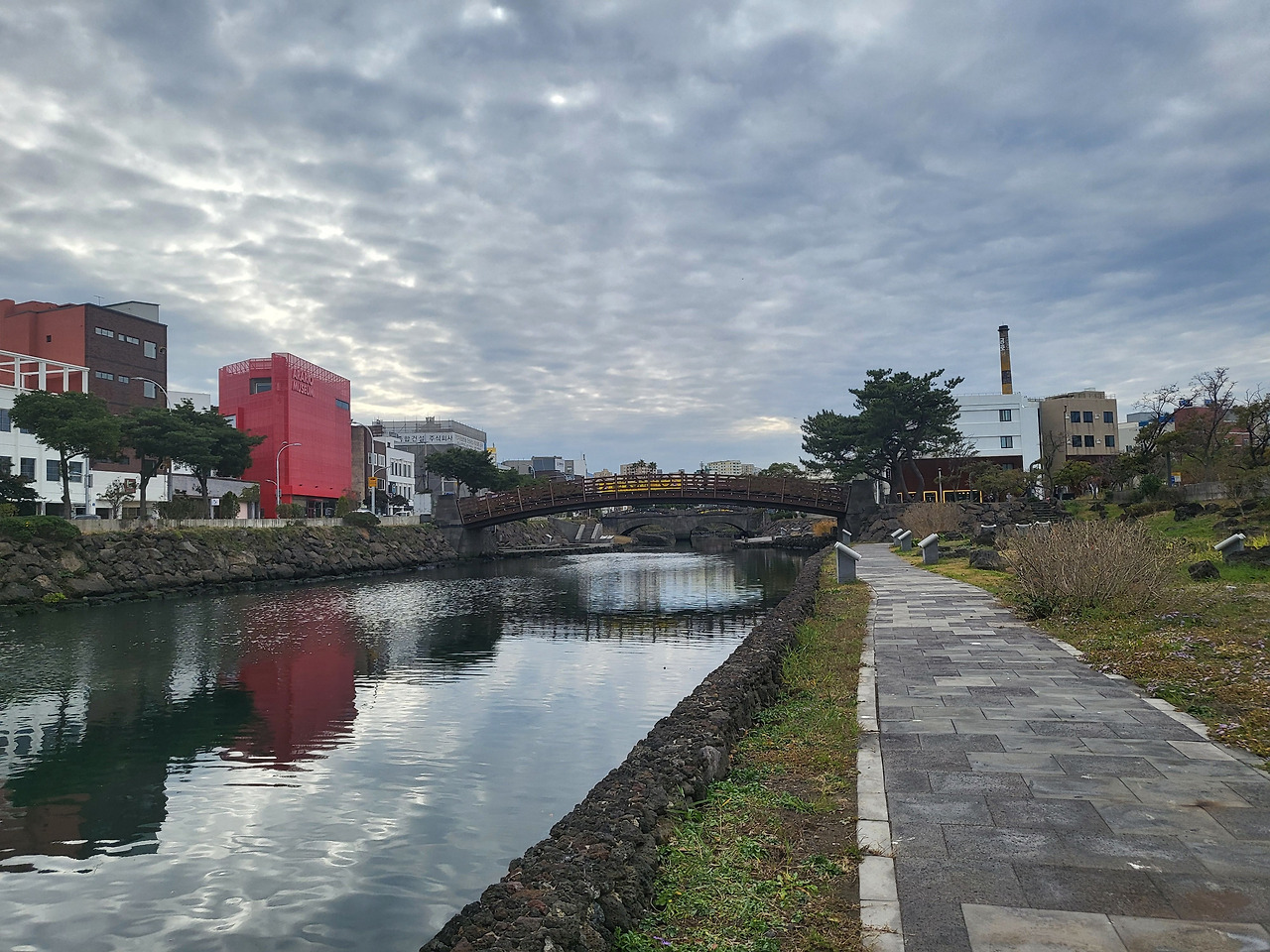 산지천의 맑은 물은 한라산에서 제주시 도심을 관통하여 제주항까지 도달한다. 산지천 근방에는 동문재래시장도 있고, 제주 올레 18코스의 시작점도 있어 늘 많은 사람들이 북적거린다고 한다. 하지만 우리가 온 날은 평온하기만 했다. 매년 ‘산지천 축제’를 개최해 맛있는 먹거리와 다양한 볼거리가 있는 때 와보고도 싶다. 여기에는 옛 건물들을 개조해서 독특한 현대 미술 전시 공간인 ‘아라리오 뮤지엄’이 두 군데가 있고, 과거 제주인들에게 본인의 모든 것을 내놓고 나눔과 봉사를 몸소 실천하신 김만덕 할머니를 기리는 ‘김만덕 기념관’ 박물관이 있다.