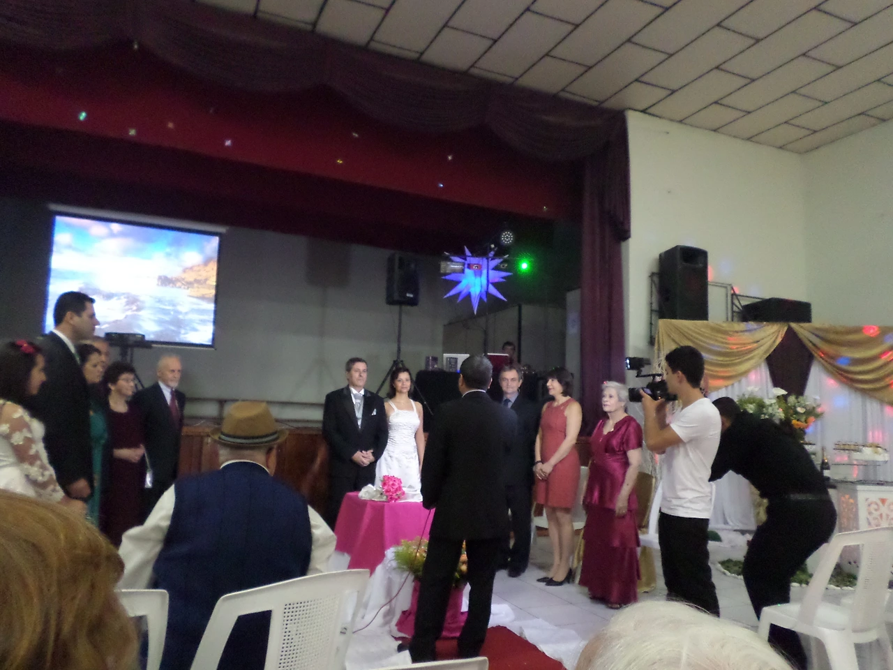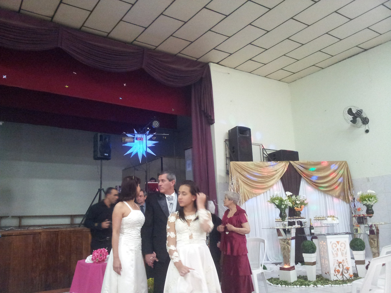 Mas o do seu tio foi numa quadra grande, tipo ginásio de escola, e depois da cerimônia teve a festa com todo mundo dançando. Crianças, adultos, todo mundo junto. Achei aquilo tão bonito!