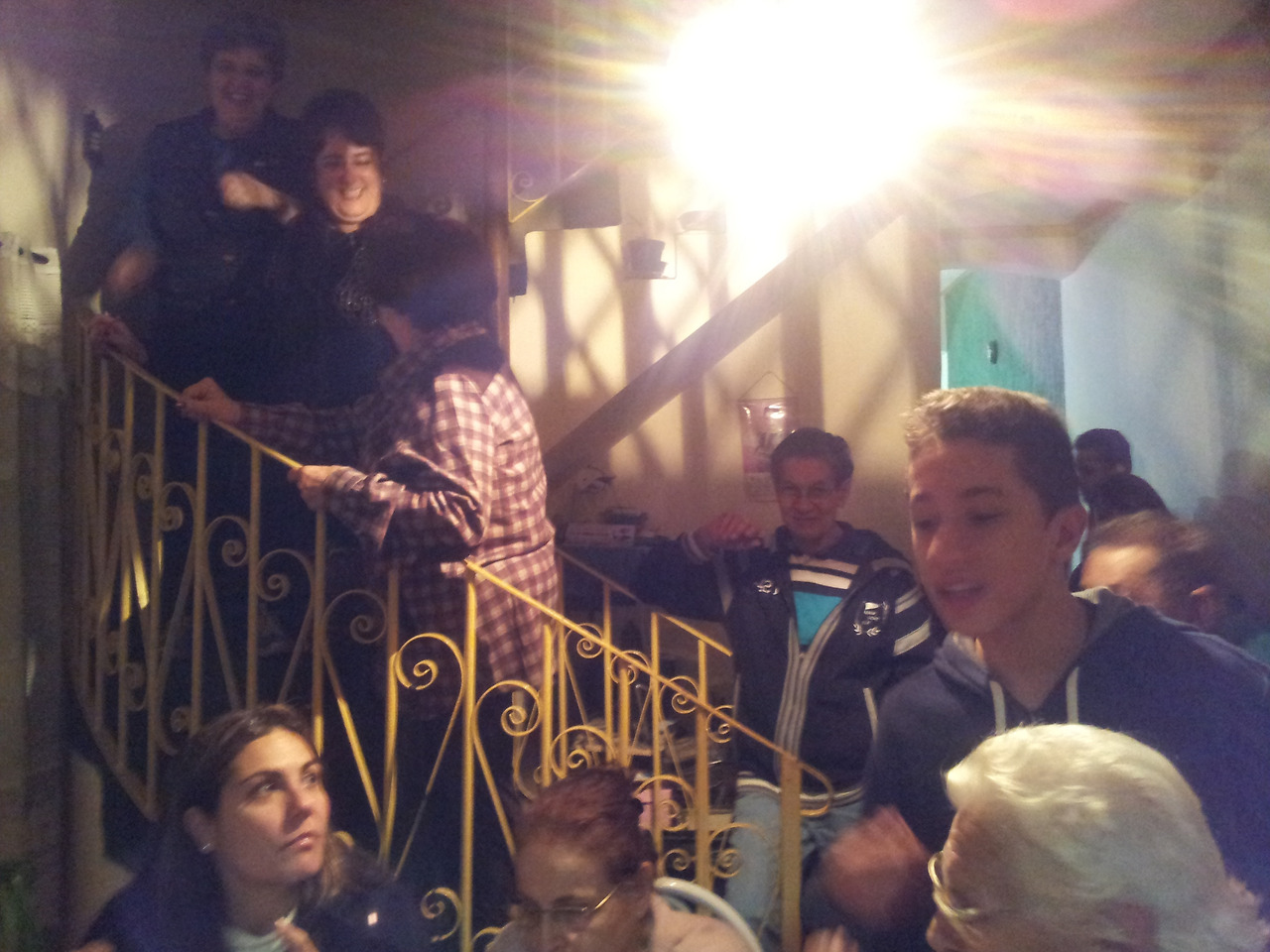 Tinha mais de 30 pessoas! Fiquei chocada, nunca tinha estado numa casa com uma família tão grande.