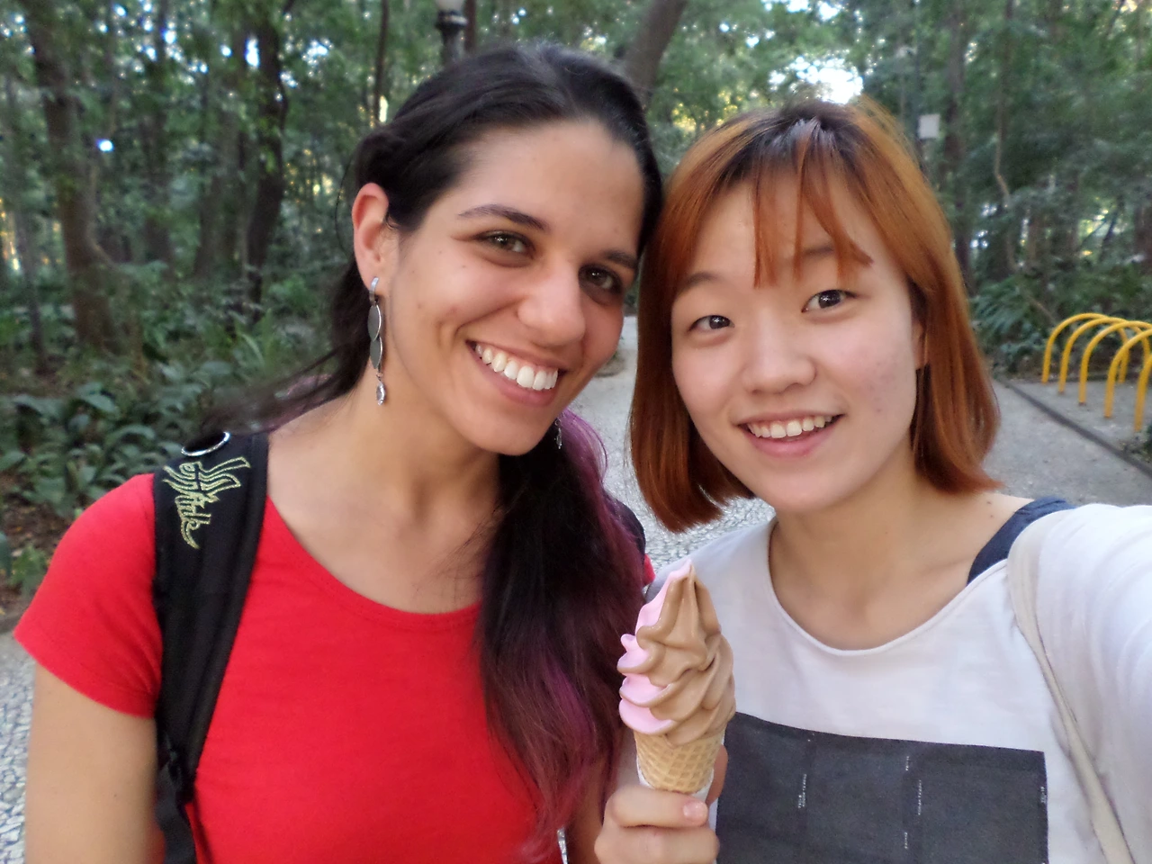 Como eu não tenho irmã, e os outros intercambistas eram todos mais novos, às vezes eu me sentia sozinha ou cansada.