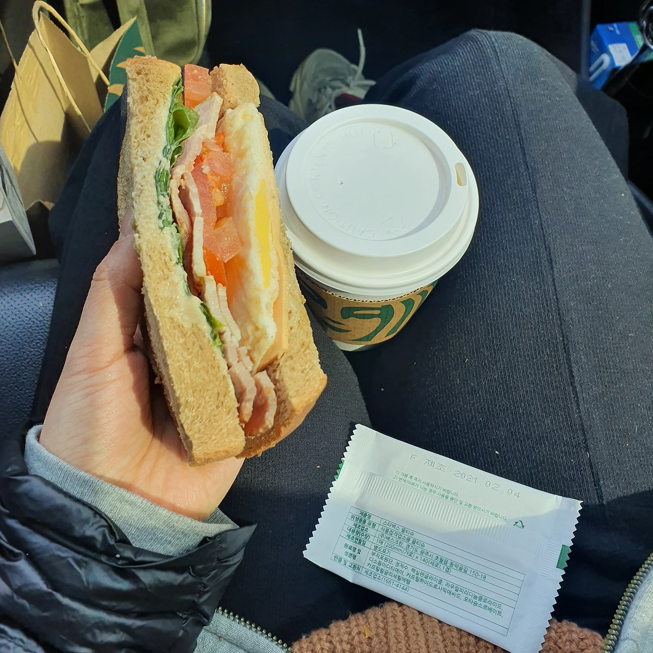 촬영가는 길 스벅 샌드위치...ㅎㅎㅎ