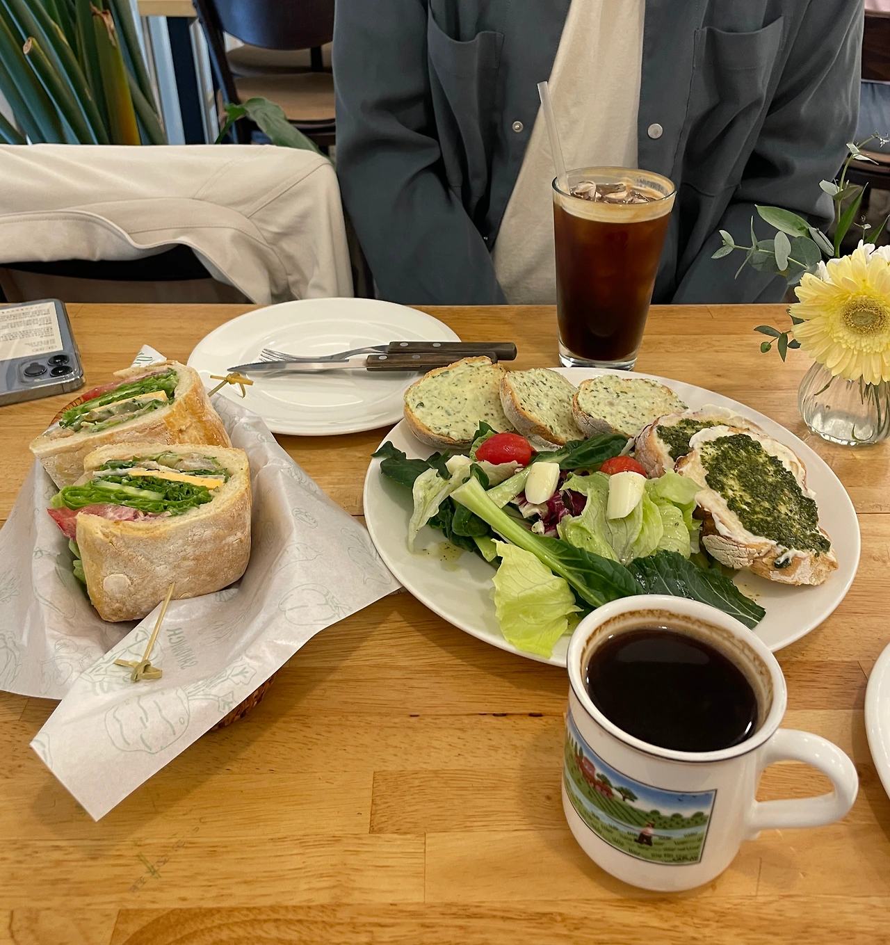 그리고 샌드위치 하나 빵과 샐러드가 같이 있는 메뉴 하나