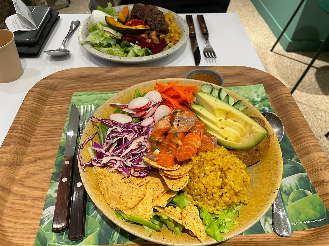 저녁은 #crispyfresh 용산 아이파크몰에 샐러드 카페. 부산에도 내려오면 좋겠다 샐러드 최고! 거기다 양도 많아서 오빠도 배부르고 만족스럽게 먹음!