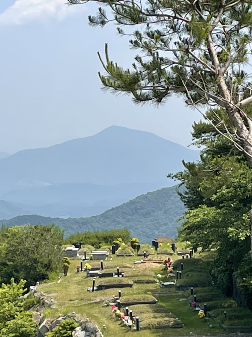 공원묘원에서 내려오는 데 저 멀리 산이 많아, 나는 나의 어린 시절이 생각났다.
