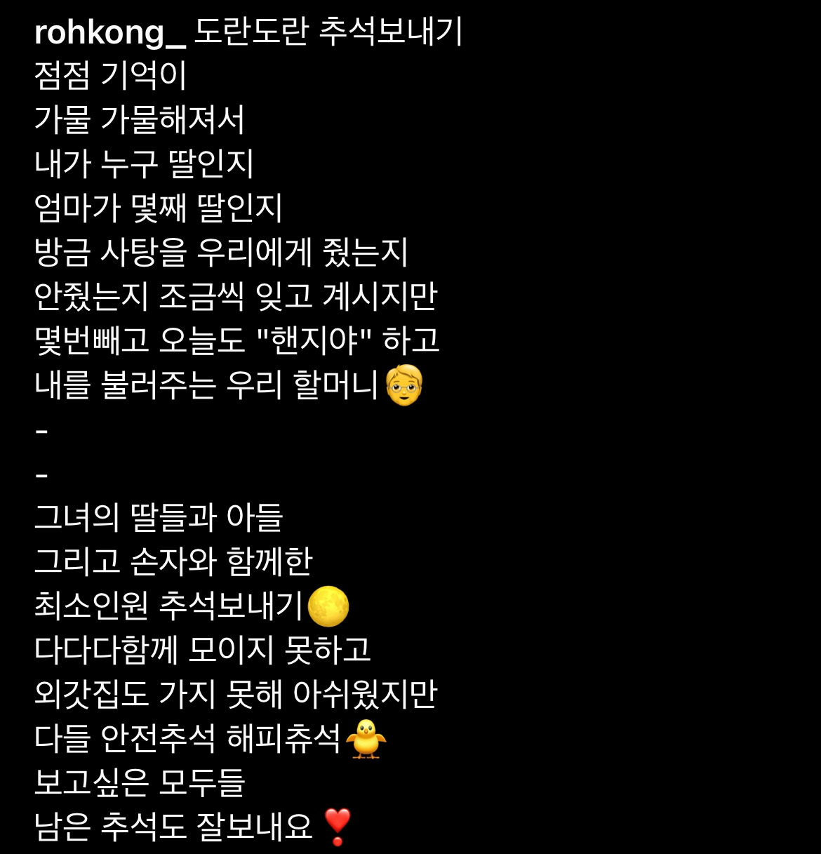 요양병원으로 갔고 추석을 작은 외삼촌 집에서 보냈고 조금 외로웠을 거 같다