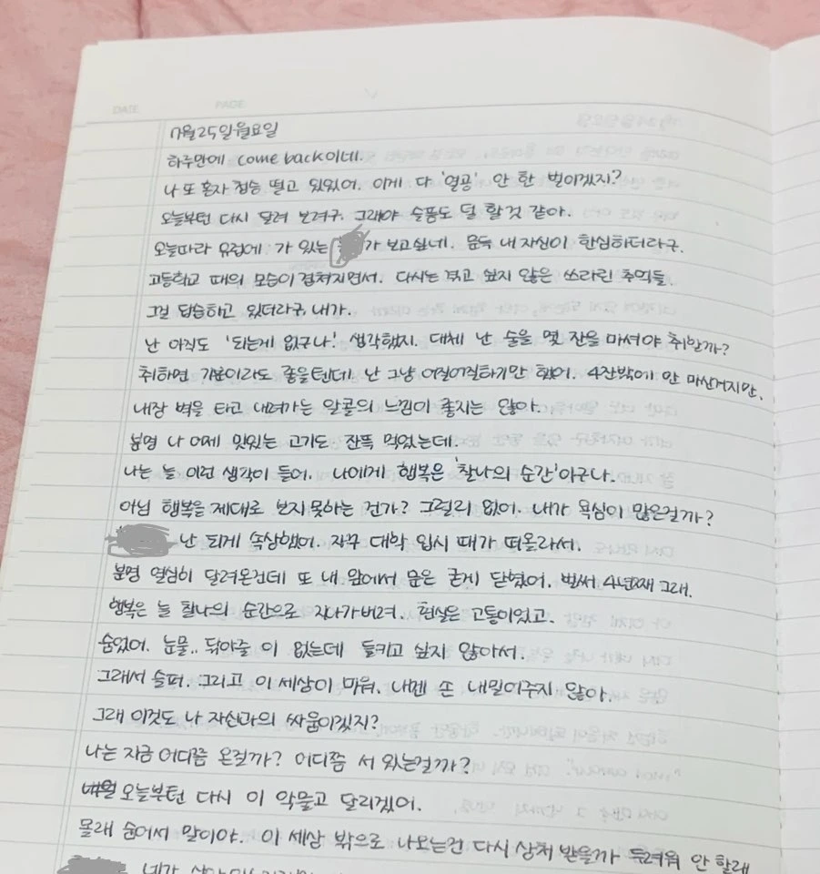 옛 추억을 잠시 떠올려본 김에 일기장을 다시 꺼냈다. 글을 타이핑하는 게 더 익숙한 지금과 달리 전에는 참 글씨를 잘 썼다. 놀라울만큼 다른 필체다.