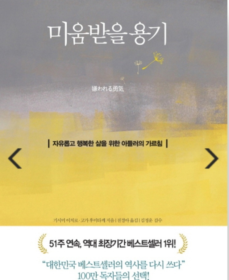 과연 미움받지 않고 나의 자존감을 살리는 것은 어려운 것인가. 자존감은 살리되 미움을 받는다면 그 자존감에 다른 부정적인 영향은 없을까. 미움을 넘어서서 왕따가 되거나 이상한 사람 취급을 받는다면 어쩌란 말인가. 이것 또한 책이나 저자의 의도에 대한 오독의 문제이겠지만. 결국 정도나 밸런스의 문제라는 거다.