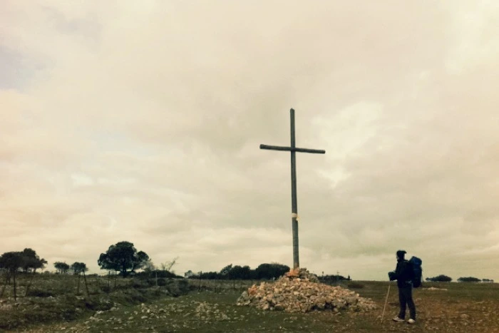 발의 통증이 계속 심해지고 있어서, 오늘도 망설이다 걷기 시작했는데 언덕 위에서 멋진 십자가와 풍경을 보게 돼서 다행이었다. 오늘 내가 버스를 탔더라면 보지 못했을 광경... 노래가 절로 나왔다.