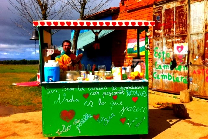 16km쯤 걷는데 언덕이 나온다. 언덕 위에 하트 모양이 잔뜩 박혀있는 노점상 하나가 나온다. 순례자들에게 기부제로 돈을 받고 음료, 과일, 빵 등을 제공하는 우리와 같은 순례자 데이비드가 그 곳에 있었다. 데이비드는 작은 노점상 옆에서 텐트를 치고 그 곳에 살며 순례자들을 만나고 있었다. 3년 전 이 곳에 노점을 차리기로 결정하고 순례자들과 가볍게 그리고 깊은 대화들을 나누며 자신만의 순례길을 걷고 있는 데이비드의 자기 안에서의 자유로움, 자기에 대한 믿음과 소신, 행복하고자 하는 의지가 멋져 보였다. 데이비드 역시 힘든 시간들을 보냈지만 그것에서 의미를 찾고 다시 오늘을 살고 있는 것이다. 자기만의 행복을 찾아서...
