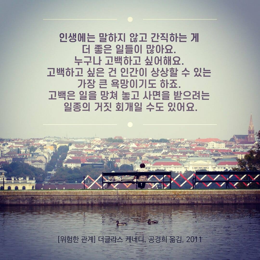 초창기 더글라스 케네디에 대해서 놀란 것이 [위험한 관계]를 읽으면서 였는데요, 여자 주인공의 심리 묘사가 숨이 막힐 정도로 디테일합니다. 실제로 많은 답답함을 느꼈던 기억이 납니다. 다시 읽고 싶지 않은 끔찍한 경험이었는 데, 어떻게 가능했는지 궁금할 따름입니다.