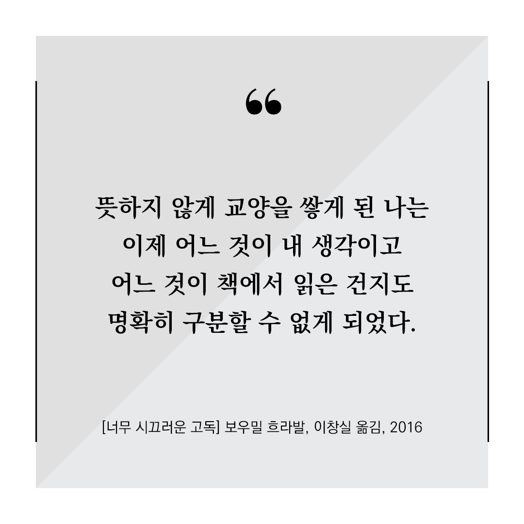 책 일기는 그렇게 시작된 일입니다. 인스타그램에 매일 올리죠. 시간대는 조금씩 다르기는 하지만... 남의 글을 베껴 쓰는 일이라 그리 어려운 일은 아닙니다만, 그래도 매일 조금씩이라도 읽어야 하고, 사진을 찍거나 예전 사진을 들춰 보기라도 해야 하고, 포토샵도 열어서 무언가를 해야 합니다. 그런 가운데 다시 읽은 책들 속에서 새로움을 발견하고, 좋은 문장들을 메모하며 좋은 시간도 갖고 있습니다.