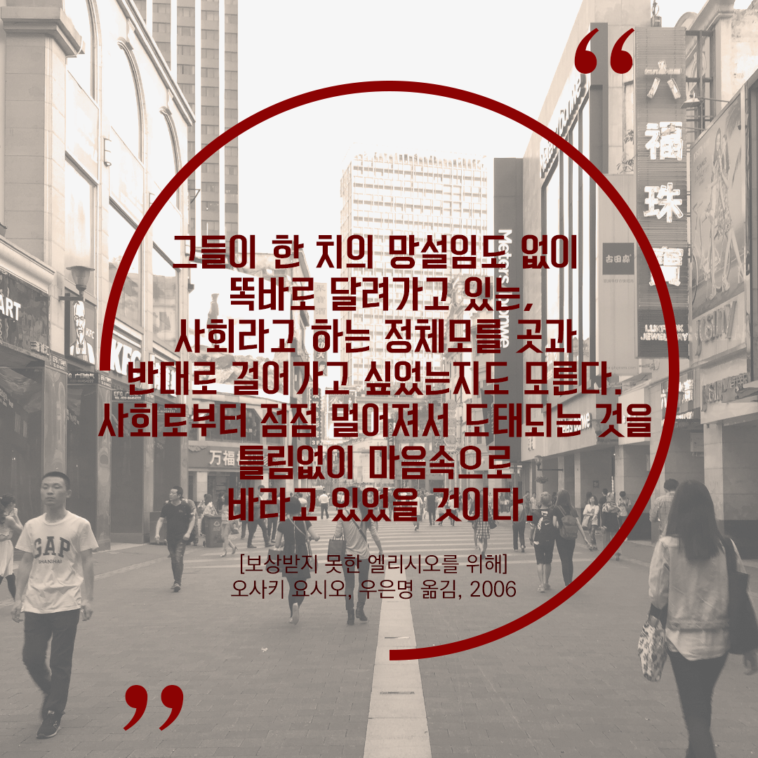 '아싸'의 탄생이라고 해야 할까요? 아니면 청소년기의 청개구리 같은 순간적인 마음일 뿐일까요? 그런데 대부분 고등학교 시절에 이런 생각하지 않았나요? 저도 나름 인정받는 아싸였는데, 결론은 도망쳐 봐야 사회 속이라는 거... 이야기 내에서는 이게 중학교 때 가졌던 생각으로 나옵니다.