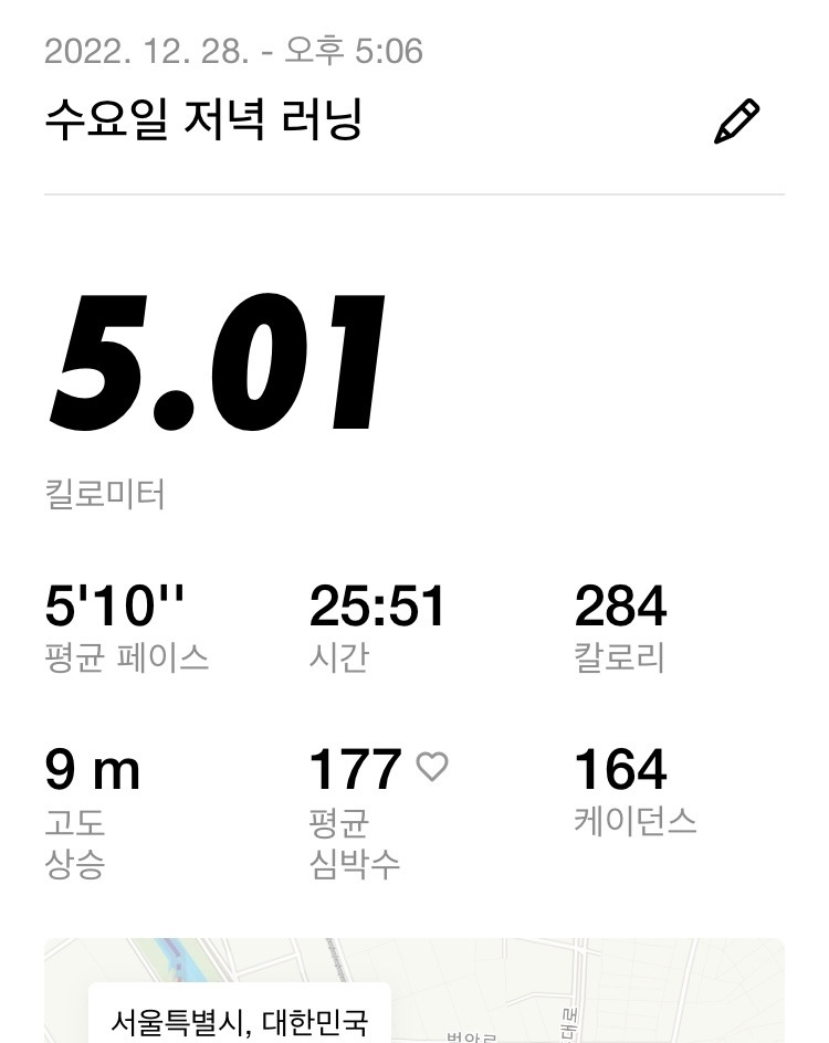 관리가 필요했다. 시간 관리도 필요했고 무엇보다 잘 먹어야 한다는 것을 깨달았다. 잘 먹었다. 닥치는 대로 먹고 규칙적으로 잠도 잘 자야 했다. 그렇지 않으면 넘지 못한다는 것을 알게 되었다. 기록 경신은 관리가 없으면 불가능했다. 그런 방식으로 12월 총 13번의 러닝을 했고 평균 5분 26초대로 접어들게 되었다. 그리고 대망의 월말 테스트를 앞두고 있었다.