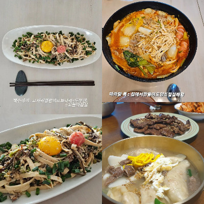 필자가 23년에 만들어서 인스타그램에 올렸던 요리들 중 가장 마음에 드는 3가지 음식이다. 고사리명란파스타, 홈메이드 마라탕, 그리고 떡만둣국과 갈비 정식이다.