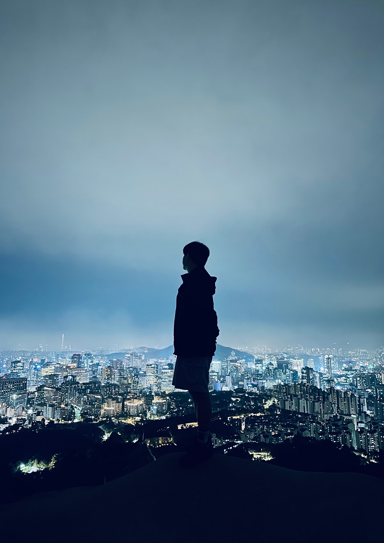 꺼지지 않는 서울의 불빛. 밤의 인왕산