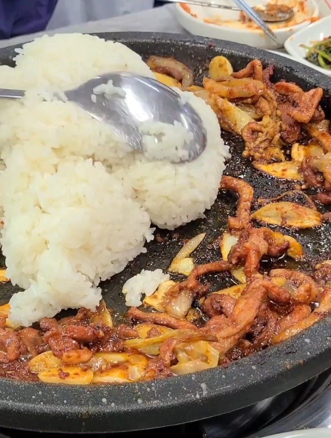 오서산 갈대밭 속에서 찍은 사진과 하산 후 먹은 오리주물럭에 공기밥 5개를 한번에 볶는 진귀한 풍경이다. 탄수화물 최고!