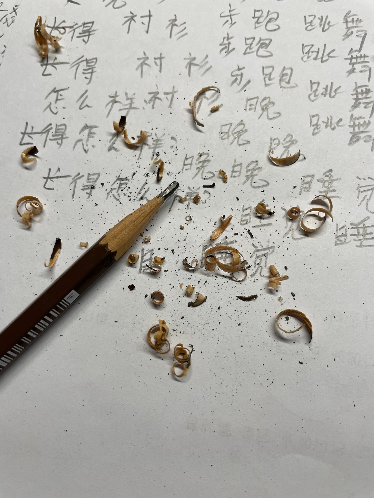 종이를 빽빽하게 한 장 정도 채우면 복습이 거진 끝난다. 내 중국어 공부의 끝은 연필을 깎는 거다. 뭉툭해진 연필 끝을 다듬으며 내일의 공부를 기약한다. 여전히 연필 깎는 솜씨는 없지만 이제는 더 이상 내가 깎은 연필이 미워 보이지 않는다. 대신 오랜 친구 마냥 정겹다.